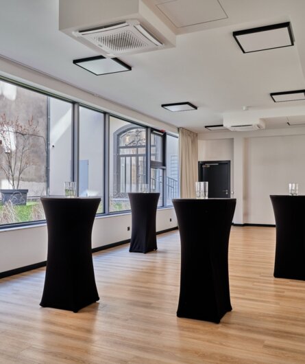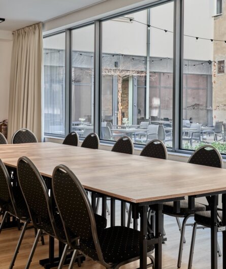 Our largest room offers a wealth of possibilities when organising events. It is perfect for a larger conference, symposium or presentation. Banquets and company Christmas parties are also held here.