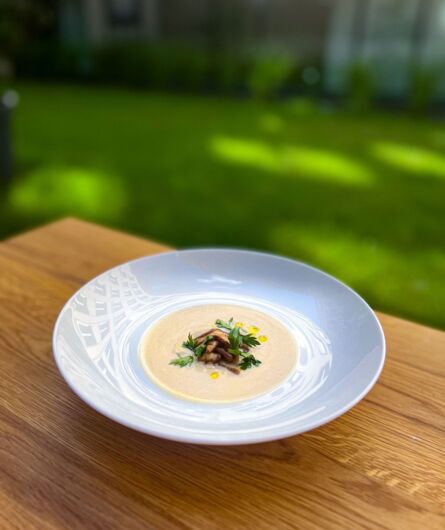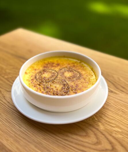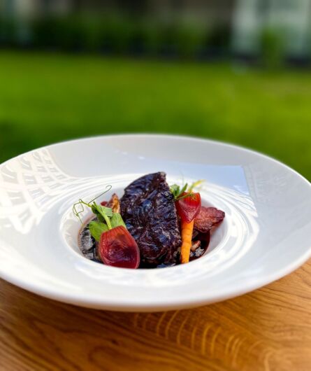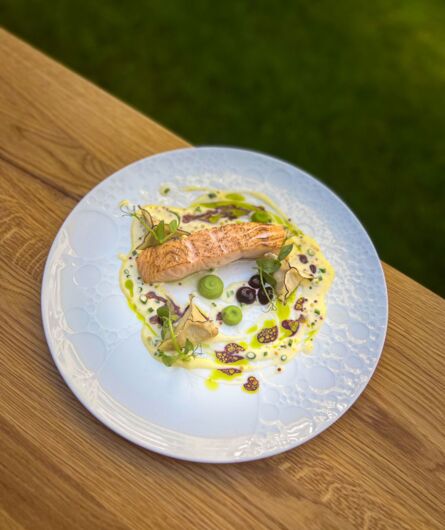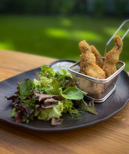 butter sauce with a hint of tarragon, topped with citrus flavoured leeks and fried oyster