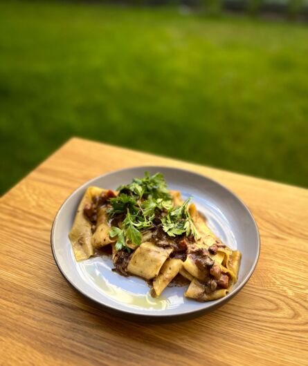 summer mushrooms with broad beans / Alsatian Riesling reduction / creme fraîche