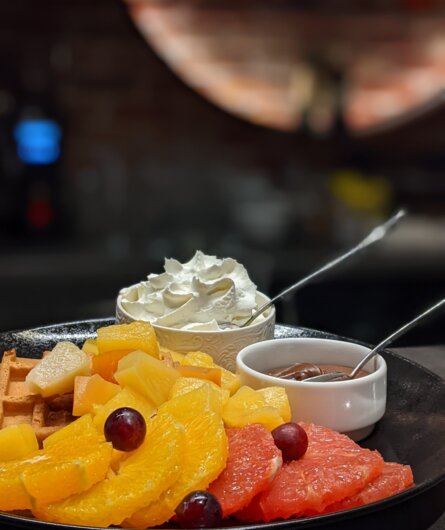Pain Perdu on homemade brioche / fresh fruit / maple syrup / coffee or tea