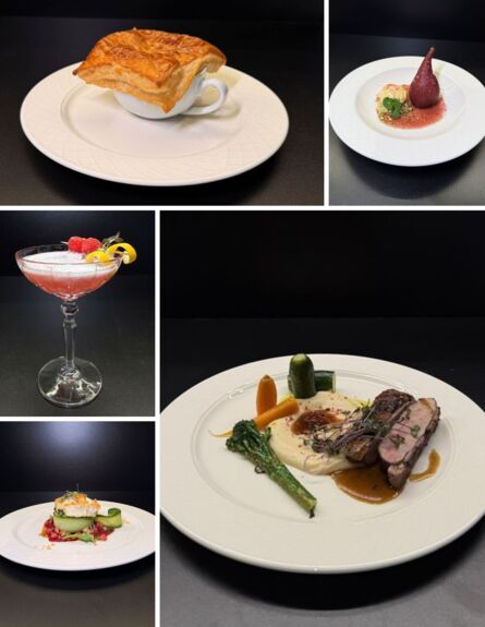 Rozgrzewające, komfortowe smaki kojarzące się z zimowymi wieczorami. Dary ziemi w połączeniu z czerwonym winem, zakończone lekko orzeźwiającym akcentem w formie koktajlu.